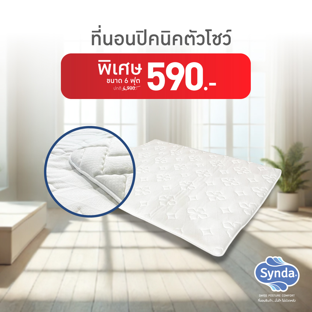 ที่นอนตัวโชว์ราคาถูกลดสูงสุด 90% ที่ Synda Outlet ทุกสาขา