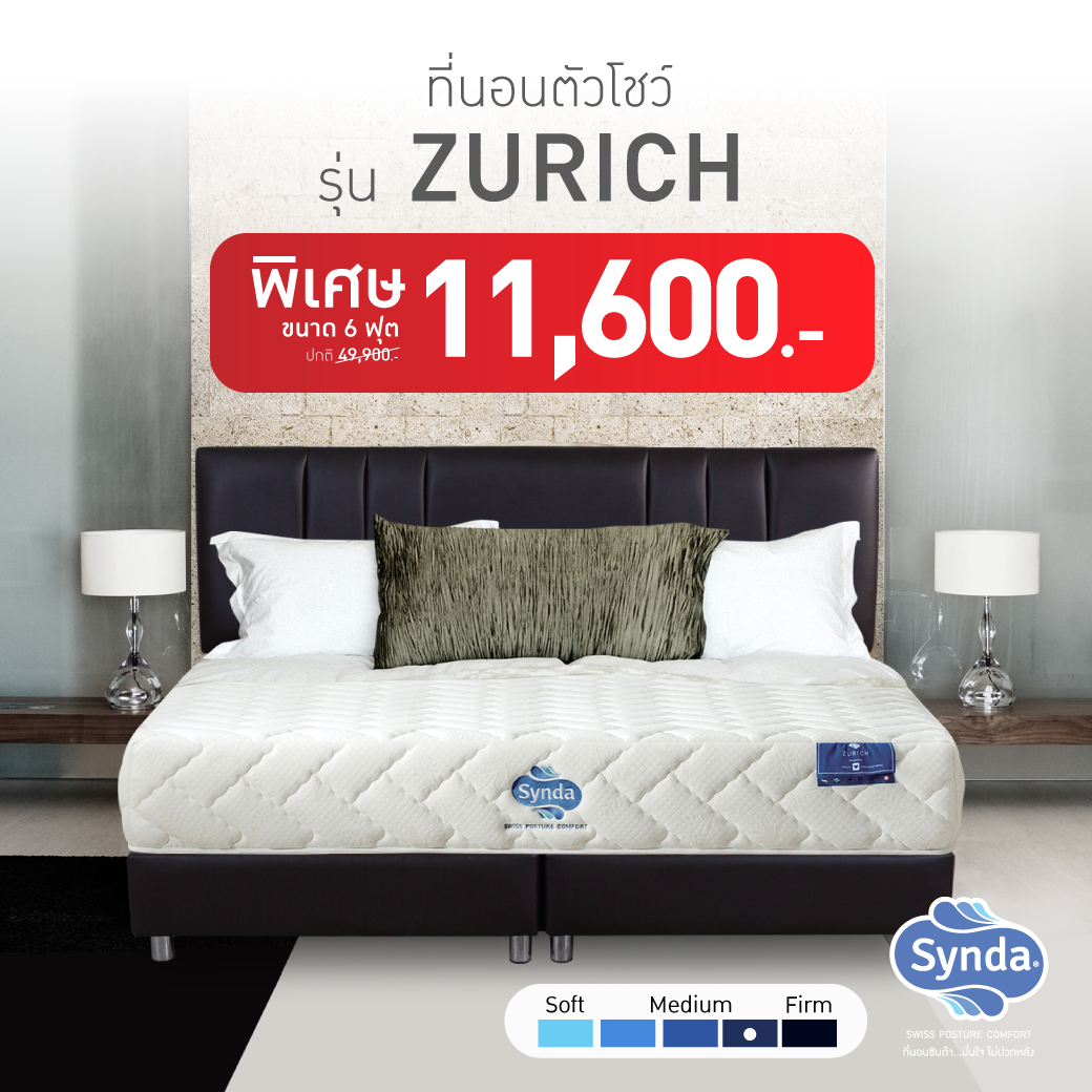 ที่นอนตัวโชว์รุ่น ZURICH ขนาด 6 ฟุต ปกติ 49,900 บาท เหลือเพียง 11,600 บาท!!