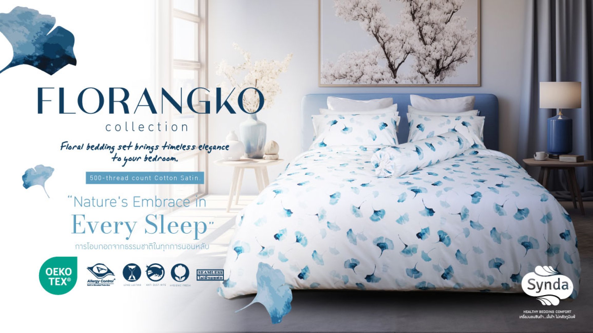 Florangko Collection สร้างนิยามใหม่ของการพักผ่อนอย่างสมบูรณ์แบบ ให้สัมผัสที่นุ่มนวล หรูหรา และอ่อนโยนต่อทุกสภาพผิว แม้ผิวบอบบางแพ้ง่าย ปลอดภัยทั้งต่อผู้ใช้และสิ่งแวดล้อม การันตีด้วยมาตรฐานระดับโลกจาก OEKO-TEX STANDARD 100