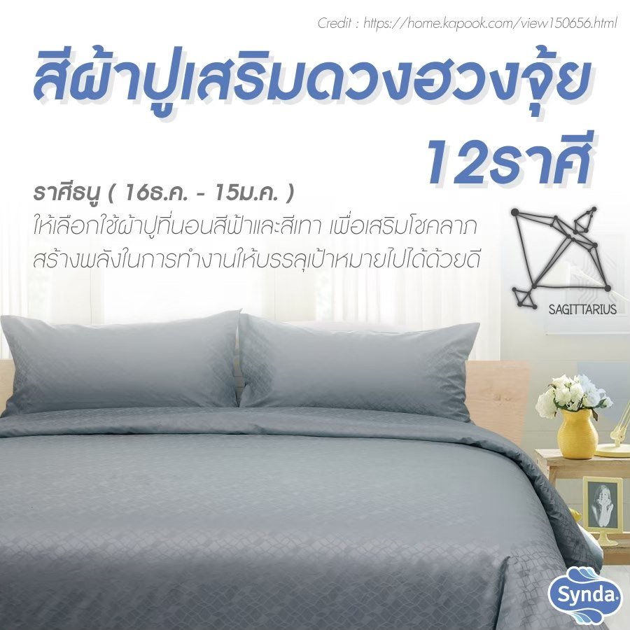 แม้อุปสรรคจะมากมายขนาดไหน แต่ชาวราศีธนูก็ยังมองโลกในแง่ดีอยู่เสมอ ตัดสินใจได้อย่างเด็ดเดี่ยว ชอบเข้าสังคม และรักการเดินทางท่องเที่ยว ด้วยบุคลิกที่คล่องแคล่วอาจจะทำให้ชาวราศีนี้เผลอพูดจาทำร้ายคนรอบข้างไปบ้าง ให้เลือกใช้ผ้าปูที่นอนสีฟ้าและสีเทา เพื่อเสริมโชคลาภ สร้างพลังในการทำงานให้บรรลุเป้าหมายไปได้ด้วยดี