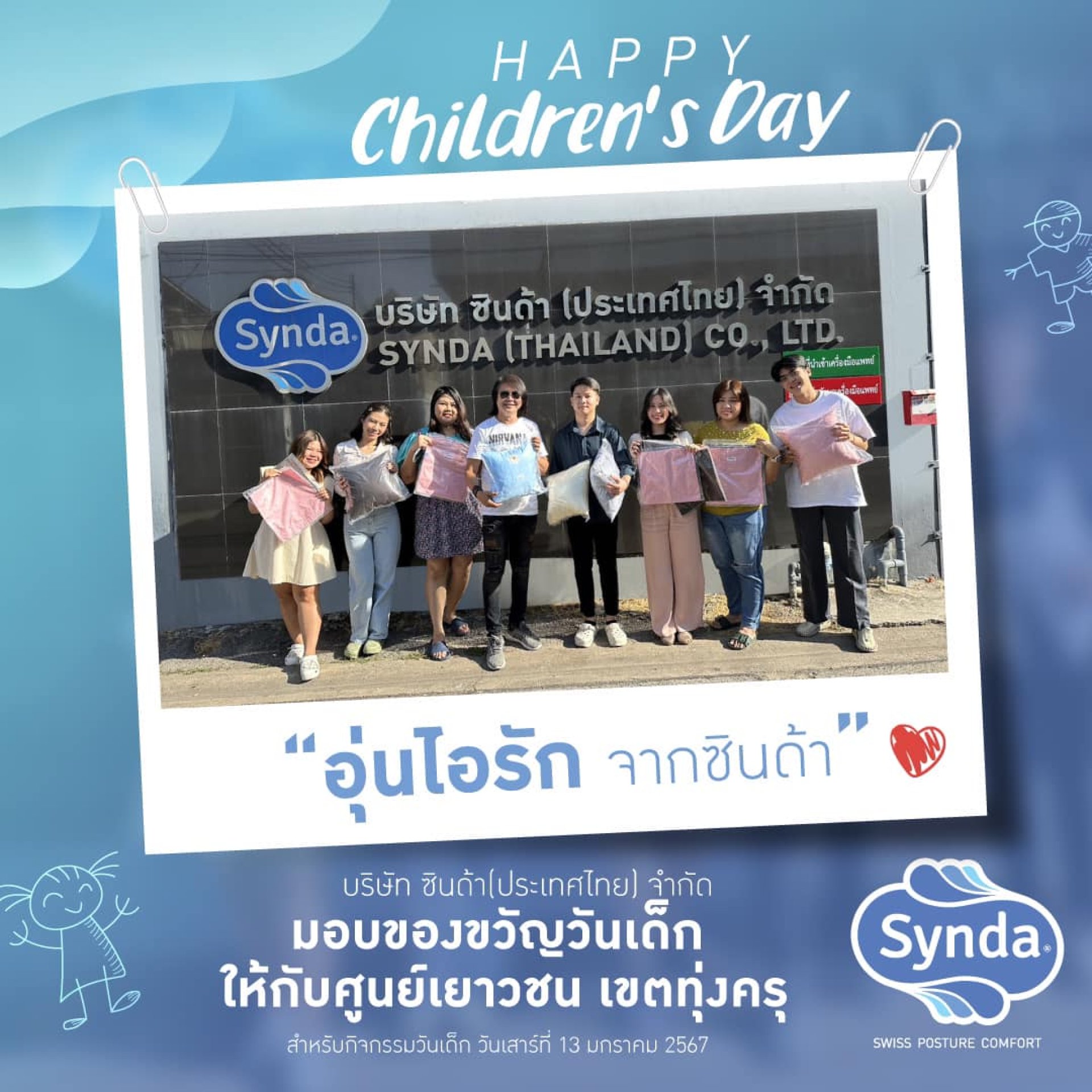 อุ่นไอรักจากซินด้า บริษัท ซินด้า(ประเทศไทย) จำกัด ร่วมสนับสนุนกิจกรรมวันเด็กแห่งชาติ 2567 มอบของขวัญวันเด็ก แก่ศูนย์เยาวชน ทุ่งครุ