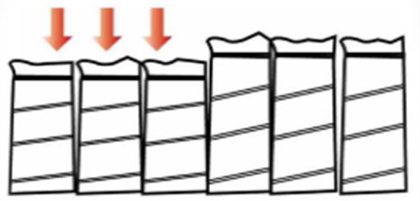 ลักษณะลูกสปริงรูปทรงถังไวน์ ขดสปริงปลายบน เล็กกว่าขดสปริงปลายล่างอทำให้แรงกดทับลงตรงจุดแกนกลางของสปริง จึงไม่จำเป็นต้องอาศัยการกระจายน้ำหนัก และขนาดลูกสปริงใหญ่กว่าสปริงชนิดเดียวกัน = 1.8 มม. โดยลูกสปริงจะทำงานแยกอิสระจากกันขณะมีน้ำหนักกดทับ
