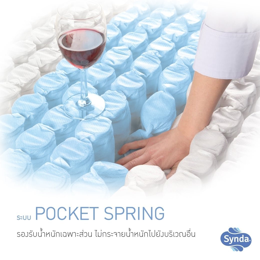 สปริงแบบ Pocket Spring ที่ถูกบรรจุอยู่ในถุงผ้า ทำให้สปริงแต่ละตัวทำงานแยกอิสระจากกัน รองรับ